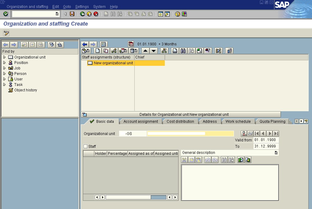 SAP Easy Access Steps:SAP Easy Access > SAP Menu > Organizational Management> Organizational Plan > Organization and staffing > PPOCE